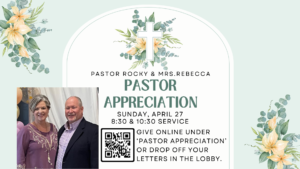 Wings of Faith Fellowship has been blessed for almost two decades in Ocala to have Pastor Rocky and Mrs. Rebecca shepherding the flock. A man after God’s own heart, Pastor Rocky is a visionary reaching out to this community and beyond to share the love of God. And, faithfully laboring by his side, Mrs. Rebecca epitomizes the “virtuous” Proverbs 31 lady in their over 40 years of ministry. Join us as we honor them on Sunday, April 27th!